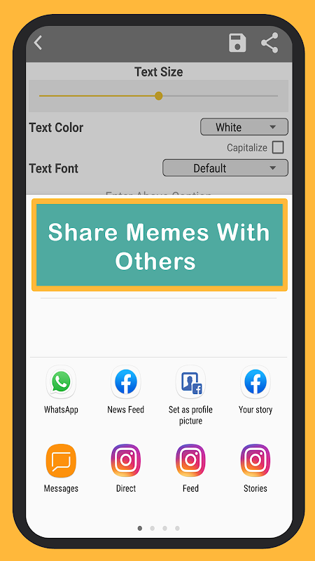 बस ऐप से एक छवि का चयन करें और अपना मेम बनाएं। मेमे जेनरेटर ऐप