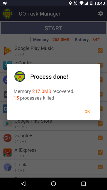 **Other task manager or task killer tools may make your phone unstable or cause potential conflict.**