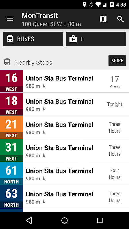 एक बार यह एप्लिकेशन इंस्टॉल हो जाने के बाद, MonTransit ऐप बसों की जानकारी (शेड्यूल...) प्रदर्शित करेगा।