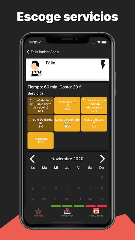 - आरक्षण 24/7: GoBarber आपको किसी भी समय उपलब्ध अपॉइंटमेंट देखने की अनुमति देता है। बस अपनी इच्छित सेवा, उपलब्ध दिनांक और बस का चयन करें।