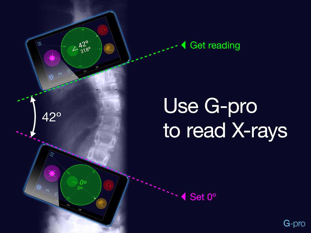 Use Goniometer Pro in radiology in x-ray interpretations (e.g. to determine the degree of scoliosis).