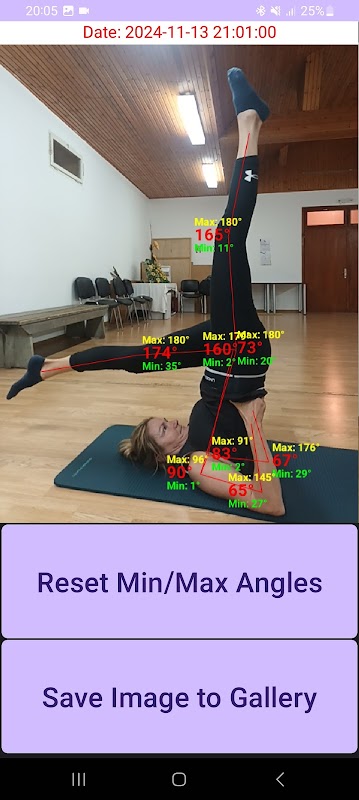 संयुक्त कोणों को मापें. कोहनी, कंधे, कूल्हों और घुटनों का स्वचालित रूप से पता लगाता है।