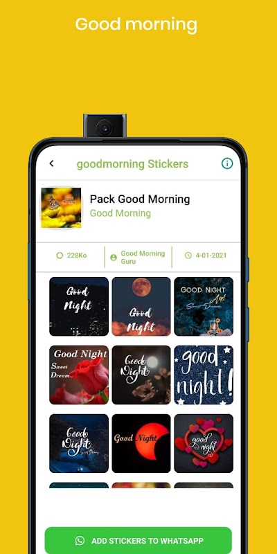 आप इन गुड मॉर्निंग स्टिकर्स को अपनी चैट और मैसेज में लगा सकते हैं। प्रधान विशेषताएँ