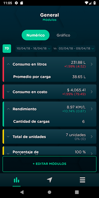टेलीमेट्री और बुद्धिमान ईंधन भार के माध्यम से, हम परिभाषित पैरामीटर तक पहुंच प्राप्त करते हैं और जानकारी प्राप्त करते हैं। इस टूल के साथ हम सूचनाओं और घटनाओं के त्वरित अलर्ट प्रदान करना चाहते हैं, ताकि उपयोगकर्ता संसाधनों के कुल नियंत्रण प्राप्त कर सकें।