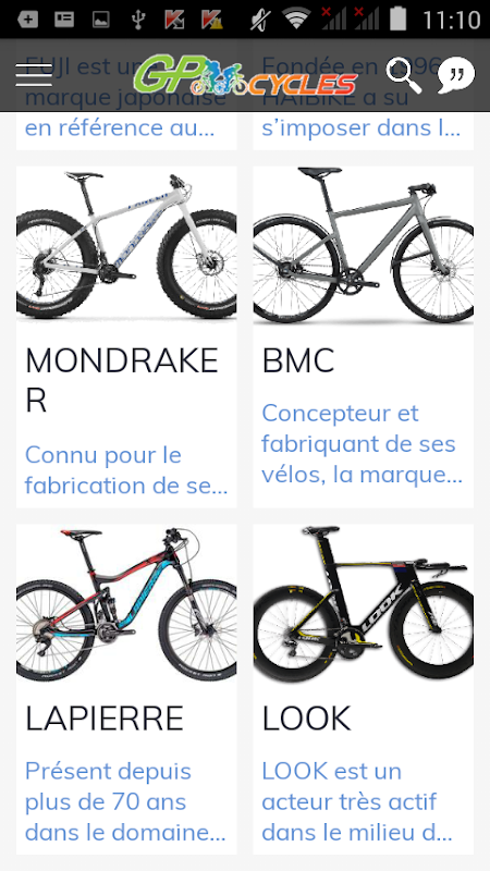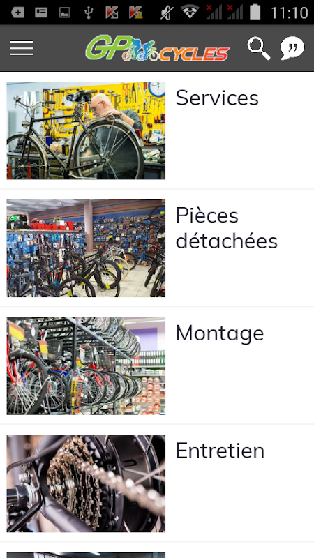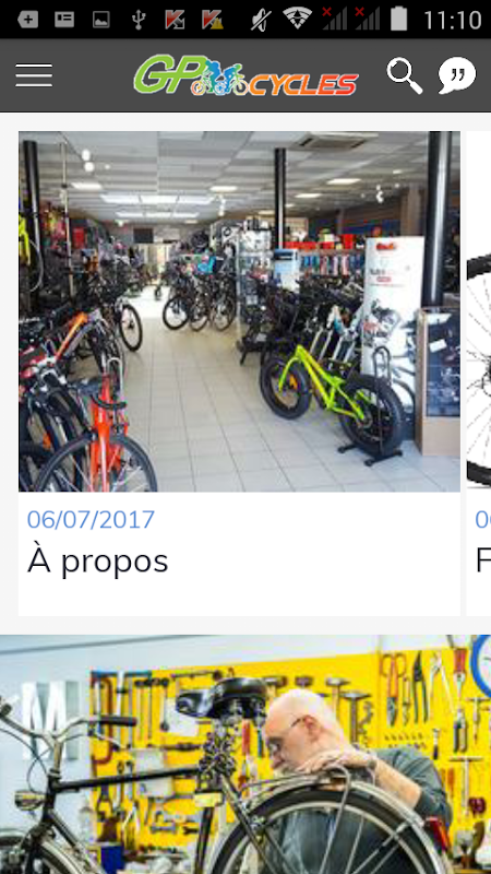 L'application "GP Cycles" vous offre la possibilité de consulter toutes les infos utiles du magasin de VTT (Tarifs, produits, avis…) mais aussi de recevoir leurs dernières News ou Flyers sous forme de notifications Push.