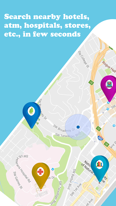आप रेस्तरां, एटीएम, बैंक, बस स्टेशन, रेलवे स्टेशन, हवाई अड्डे, ब्यूटी सैलून, अस्पताल, सिनेमाघरों आदि जैसी आस-पास के POI (पॉइंट ऑफ इंटरेस्ट) स्थान प्राप्त कर सकते हैं। आप आसानी से उन स्थानों तक पहुंच सकते हैं और मार्ग ढूंढ सकते हैं।