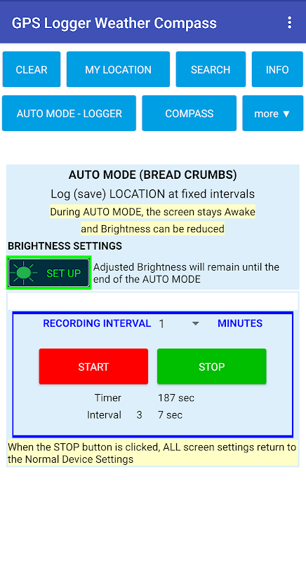 अनुमतियाँ: अनुमतियों का कारण एपीपी को आपका स्थान खोजने और आपके एसडी कार्ड पर निर्देशांक संग्रहीत करने की अनुमति है। वे एपीपी की स्थापना पर अनुरोध कर रहे हैं। एक और अनुमति - स्क्रीन सेटिंग्स के लिए - पहली बार ऑटो मोड का उपयोग करने पर अनुरोध किया जाएगा।