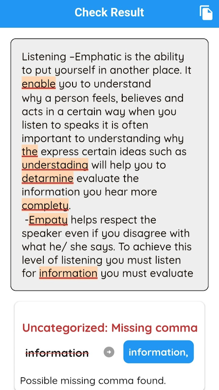 वास्तविक समय में किसी भी व्याकरणिक और वर्तनी की गलतियों की जाँच करके अपनी लिखावट में सुधार करें।