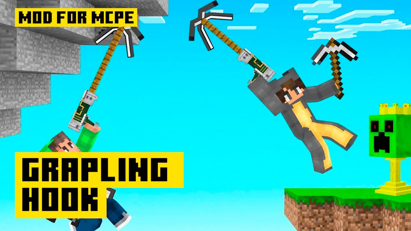 😋 Download and install our addon for an unforgettable experience of travel and battles with the Grapling Hook mod. This Grapling Hook Mod supports the latest versions of minecraft and multiplayer!😝 You can play Grapling Hook with your friends and immerse yourself in the wonderful atmosphere of the Minecraft PE game 😁