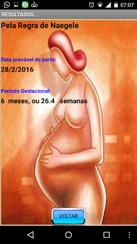 Naegele के शासन का उपयोग करना, इस आवेदन वितरण की संभावित तिथि, सहिष्णुता और अधिक या कम के दो सप्ताह के साथ, महीने या सप्ताह में गर्भ की आयु के अलावा सूचित।