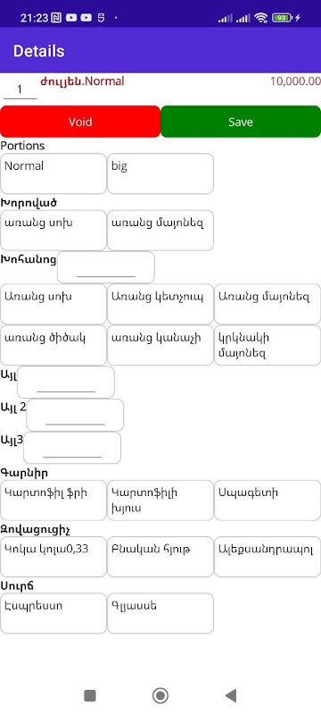 वेटरों के लिए जगह में आदेश बनाओ।