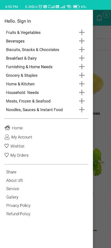 यह किराना स्टोर का मोबाइल ऐप है, ग्राहक ऑर्डर दे सकता है।