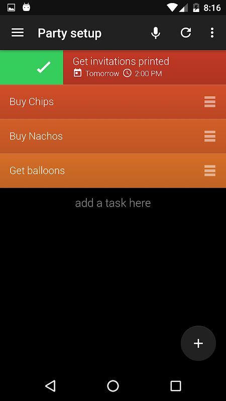 • Swipe right on tasks to complete them, swipe left to delete tasks.