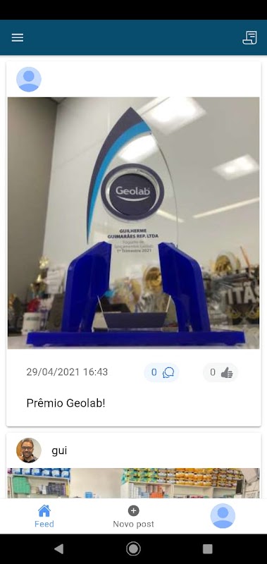 • Feed para publicação e engajamento, que funciona como uma rede social;