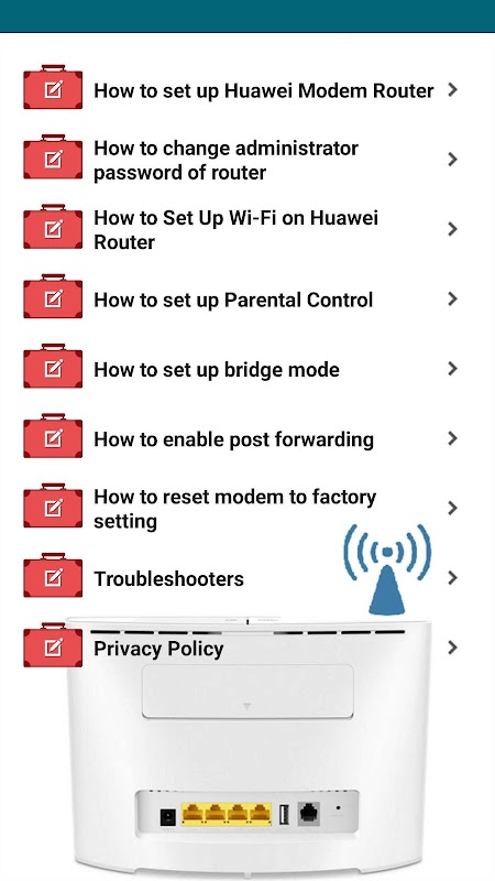 हमारा मोबाइल एप्लिकेशन बताता है कि हुवावे मॉडेम राउटर को कैसे कॉन्फ़िगर किया जाए। जब आप अपने इंटरनेट की समस्या के कारण अपने मॉडेम को रीसेट करते हैं, तो आपको अपने वाईफाई पासवर्ड को भूल जाने या एक नया huawei modem खरीदने पर पुनः इंस्टॉल करने की आवश्यकता होती है।
