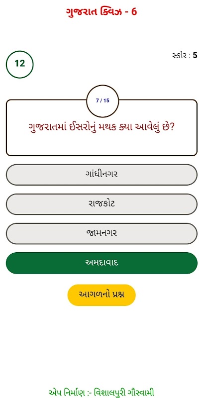 गुजरात प्रश्नोत्तरी - विशाल विज्ञान द्वारा गुजरात राज्य के बारे में गुजराती ऐप।
