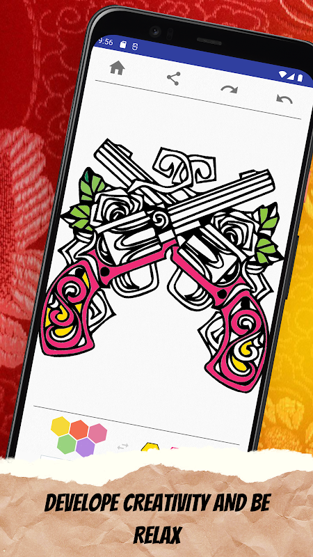 50 से अधिक प्रकारों के साथ विभिन्न रंग पैलेट हैं। शॉट गन कलरिंग ऐप के साथ अपनी रचनात्मकता बनाएं। सोशल मीडिया शेयरिंग सुविधाओं के साथ अपना काम साझा करना न भूलें!