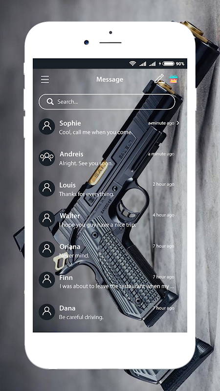 A new cook way to makeover your boring SMS messenger, “Gun SMS Message” is here, by apply Gun Theme for Android free SMS app and Guns SMG Arm text messaging apps.
