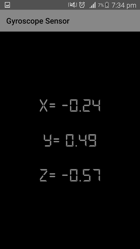 This app is designed to test gyroscope sensor's data of your android device. Its a hardware test to check all axes values of your phone's gyroscope sensor. Just download and install Gyroscope Sensor Tester to do that for free.