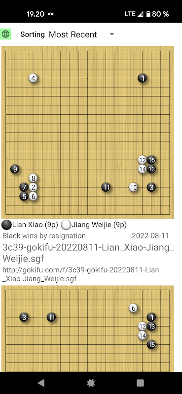 Downloaded SGF files or played games are saved only when they are modified.