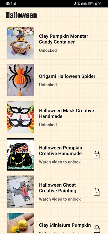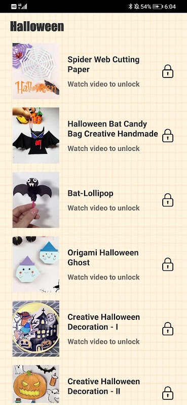 This application contains a collection of Halloween decorations schemes video tutorials. You can follow the video step by step to make the creative works. It has a friendly、simple & easy interface and it is suitable for people of all ages. You can use it offline, you can also save the video tutorial to your phone and share it with your friends.