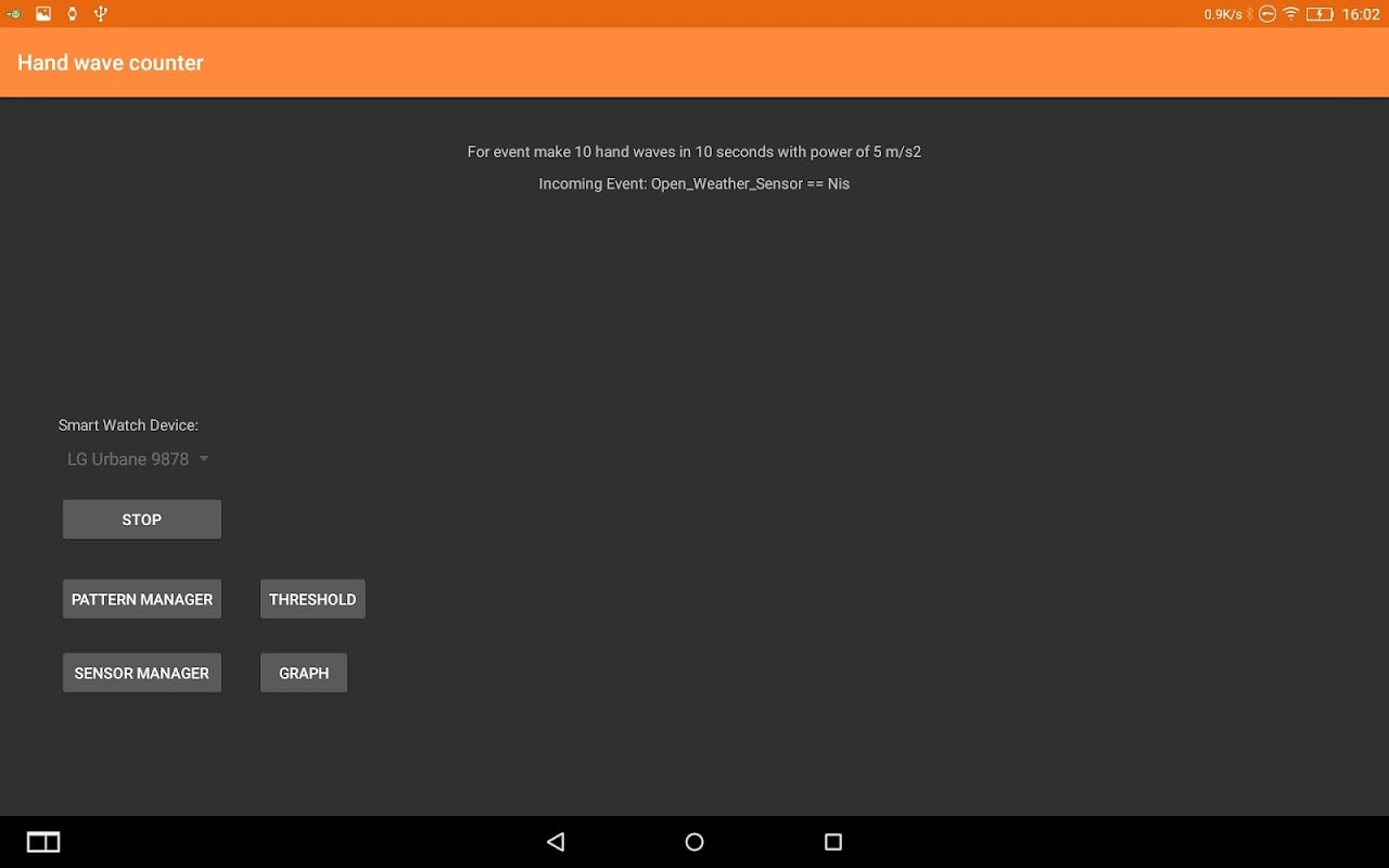 Generate various control events on your mobile phone just by waving your hand while wearing smartwatch. For example you want to send a control event that contains your heart rate after waving three times fast within five seconds. This condition is called pattern and you can define arbitrary patternst hat include complex relation between different parameters, incl. weather condition or your speed.You can create as many patterns as you want. You can even create a "chain" of events, where one event will trigger a pattern which will create the next event and so on.