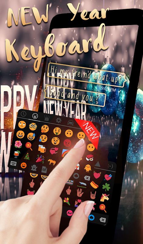 Happy New Year 2018 Keyboard Theme is now available for free If you enjoy action movies, you will also love this brand new Happy New Year 2018 Keyboard. This FREE Happy New Year 2018 Keyboard Theme will bring your Galaxy & text input a new feeling It’s totally designed for those who like sending message and typing fast, easy, and fun with emoticon and emoji. All of the boring feeling can be in history.