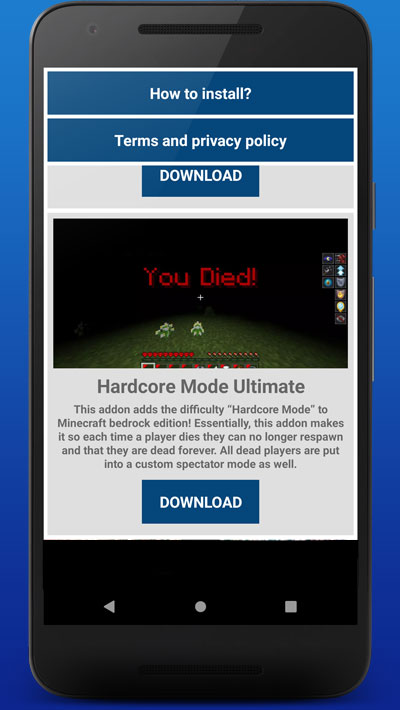 The app Hardcore Mod For Minecraft was developed to supply mods to everyone interested in personalize the game.
