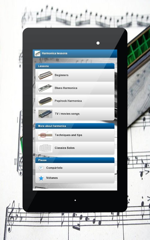 Download our free application Harmonica lessons and have fun with your harmonica.