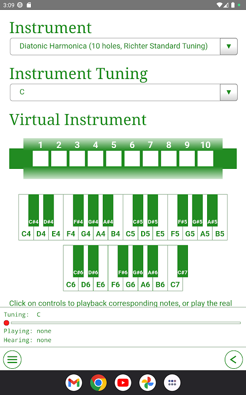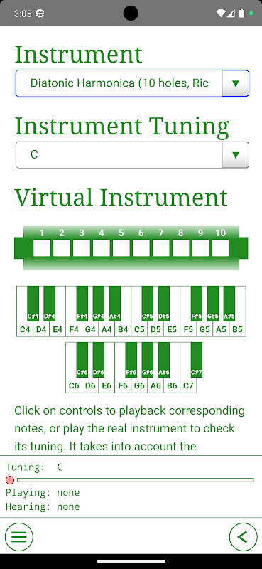 - इंटरैक्टिव प्रशिक्षण मोड (वास्तविक दुनिया के हार्मोनिका पर बजाने की पहचान और स्कोरिंग);