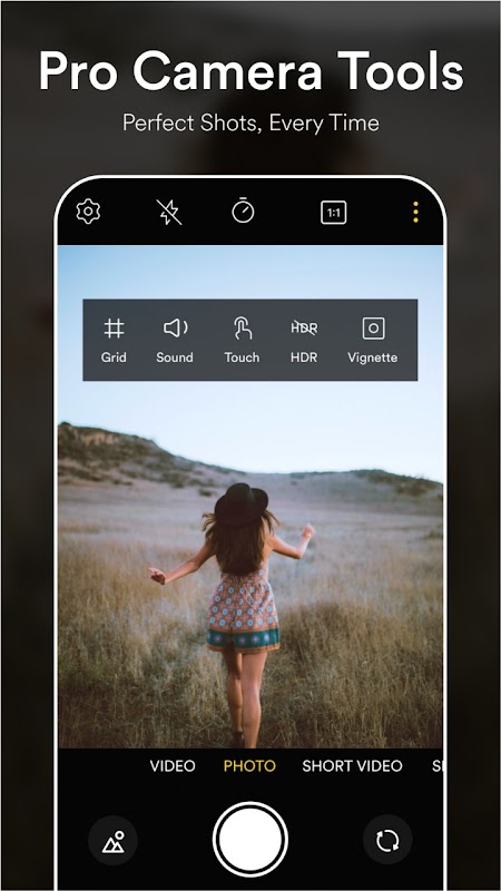 ग्रिड, स्पर्श, अनुपात, विगनेट, शटर ध्वनि और बहुत कुछ जैसी मैन्युअल सेटिंग्स के साथ अपने शॉट्स पर पूर्ण नियंत्रण रखें।