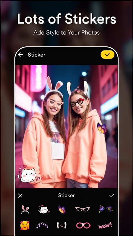 क्रॉप, फिल्टर, स्टिकर, कटआउट, ओवरले, टेक्स्ट आदि जैसे शक्तिशाली फोटो संपादक टूल के साथ आसानी से अपनी तस्वीरें खींचें और बढ़ाएं।
