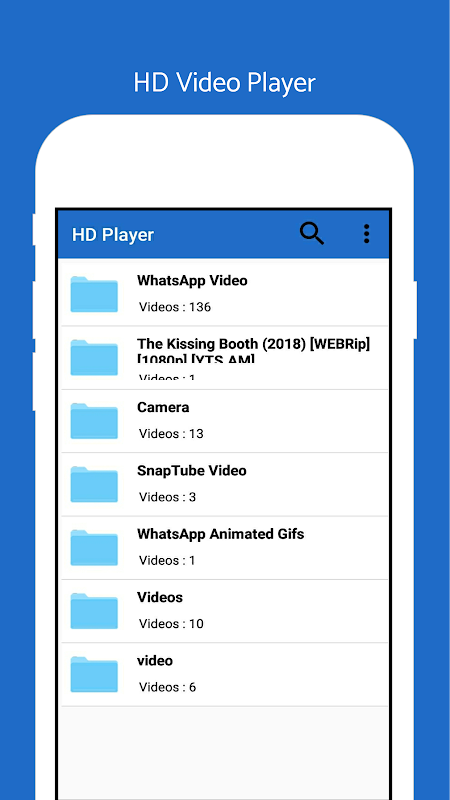 HD Video Player can automatically detect videos in the phone memory and SD Card.