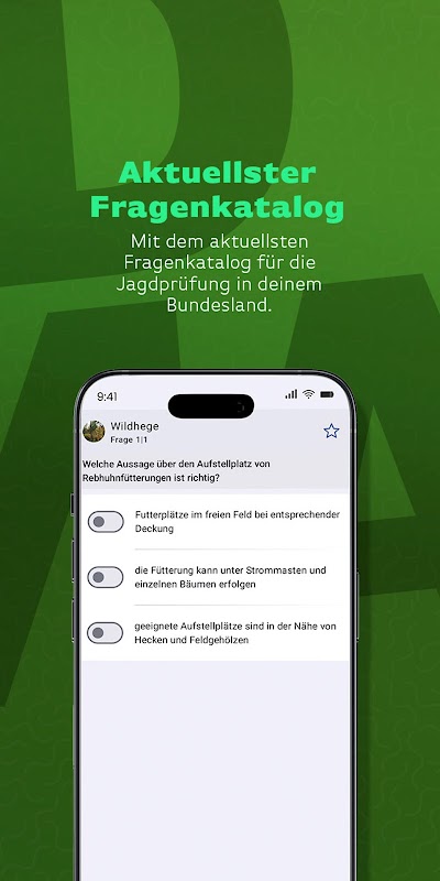 • शिकार लाइसेंस के लिए प्रशिक्षण और परीक्षण मोड के लिए ग्राफिकल मूल्यांकन