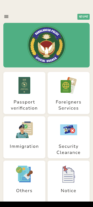 आम लोगों के लिए बांग्लादेश पुलिस की विशेष शाखा द्वारा आवेदन। इस एप्लिकेशन का उपयोग करके उपयोगकर्ता सार्वजनिक सेवाओं की विभिन्न शाखाओं में अपना अनुभव साझा कर सकता है।