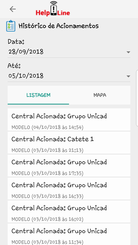 O app também dispõe da gestão completa das centrais, bem como histórico dos acionamentos feitos.