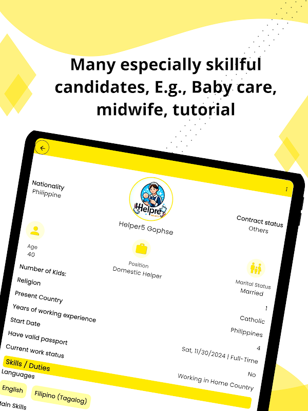 🗂 विशाल चयन: फिलीपींस, इंडोनेशिया और अन्य देशों से योग्य घरेलू सहायकों का एक बड़ा पूल ब्राउज़ करें।