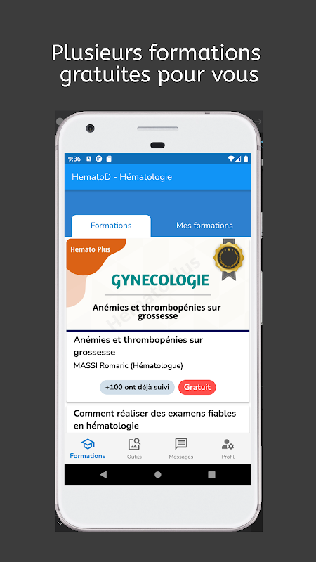 HematoD को चिकित्सा शिक्षा जारी रखने के लिए डिज़ाइन किया गया है। यह एक प्रमुख उपकरण है जो ऑडियो प्रशिक्षण सत्रों के माध्यम से स्वास्थ्य पेशेवरों को दैनिक रूप से प्रशिक्षित करता है और विशिष्ट विकृतियों के निदान और प्रबंधन के लिए उन्हें सक्षम होने के रूप में प्रमाणित करने के लिए उनके ज्ञान का आकलन करता है।
