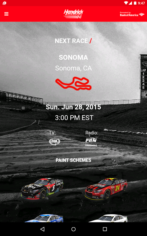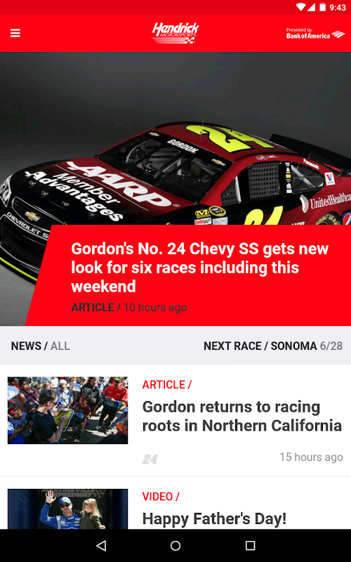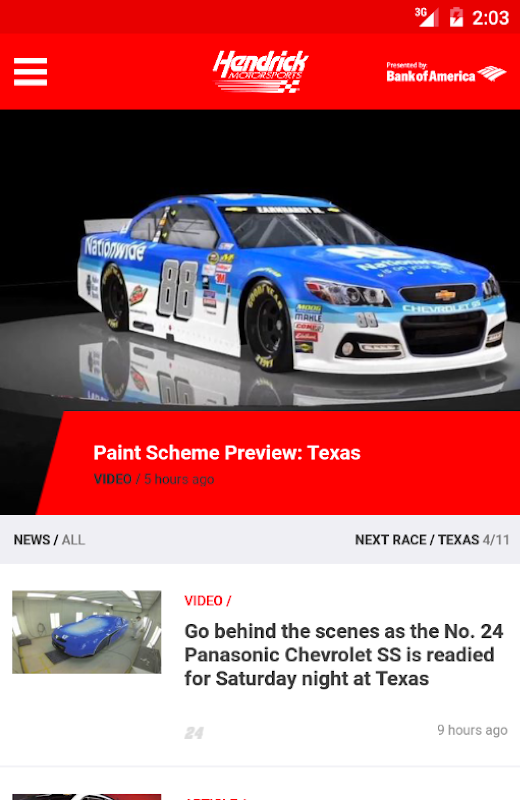 हर जगह तुम जाओ तुम्हारे साथ रियासत अनुभव ले लो! Hendrick Motorsports मोबाइल app आप हमारी टीम और ड्राइवरों Kasey Kahne, जेफ गॉर्डन, जिमी जॉनसन और डेल Earnhardt जूनियर के लिए एक सब-पहुँच पास देता है, और तुम रहती अप-टू-डेट ताजा खबर, फोटो और वीडियो के साथ।