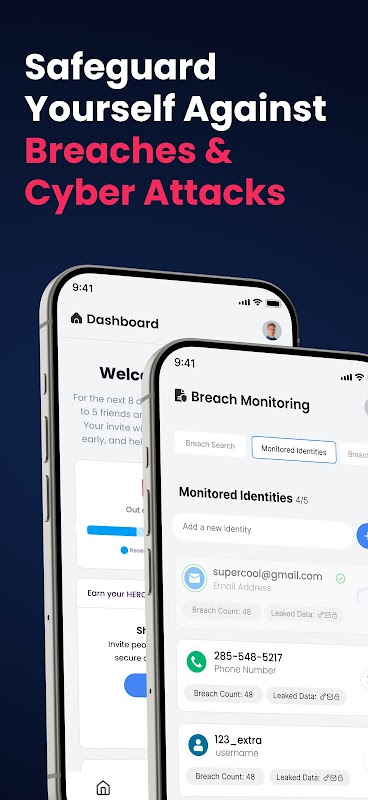 हीरोइक गार्जियन मोबाइल ऐप सीधे आपके मोबाइल डिवाइस पर शक्तिशाली उल्लंघन निगरानी लाता है, जो आपको वास्तविक समय में साइबर खतरों से सूचित और सुरक्षित रखता है। उपयोग में आसानी और सुरक्षा के लिए डिज़ाइन किया गया ऐप आपको इसकी अनुमति देता है: