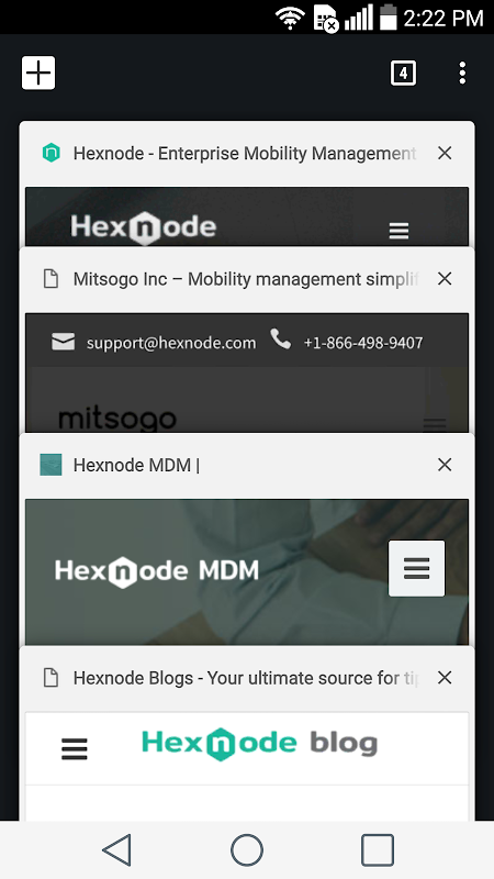 Hexnode Kiosk Browser एक प्रतिबंधक ब्राउज़र है जो आपको सुरक्षित रूप से ब्राउज़ करने और मल्टी-टैब ब्राउज़िंग को कियॉस्क मोड में सक्षम करने की अनुमति देता है। यह आपको केवल एंटरप्राइज़ द्वारा अनुमत श्वेतसूची वेबसाइटों तक पहुँचने की अनुमति देता है।