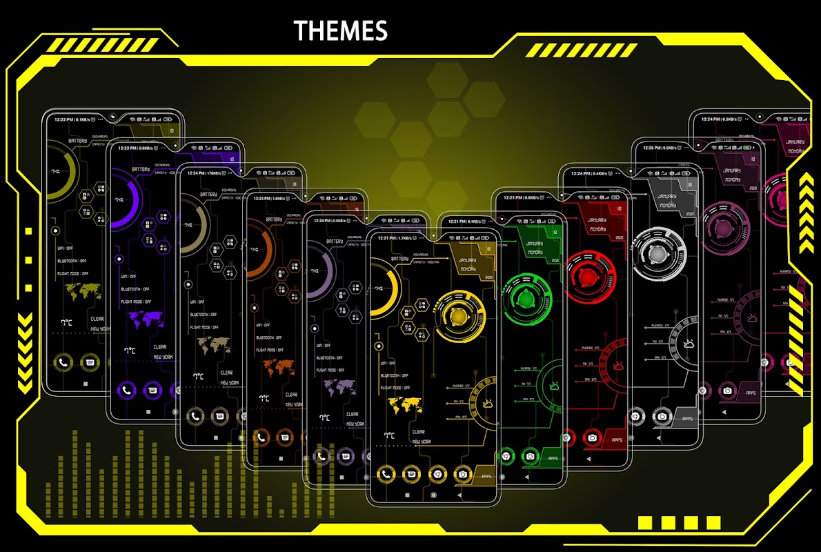 लाखों थीम रंग विकल्पों के साथ खुद को रंगों की दुनिया में डुबो दें। देखें कि आपका संपूर्ण लॉन्चर एक भविष्यवादी हाईटेक वाइब को प्रदर्शित करने के लिए रूपांतरित हो जाता है।