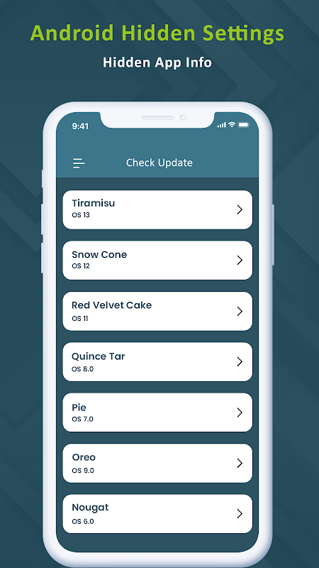 एंड्रॉइड ऐप के लिए छिपी हुई सेटिंग आपके एंड्रॉइड डिवाइस में बिना रूट और बिना किसी अनुमति के छिपी हुई सेटिंग्स तक पहुंचने की अनुमति देती है। यह डिवाइस की जानकारी देगा। ऐप स्टेटिस्टिक्स आप ऐप विवरण जैसे समय आदि तक पहुंच सकते हैं। वाईफाई जानकारी और आप वाईफाई जानकारी तक पहुंच सकते हैं। और अधिसूचना इतिहास और आप कई और छिपी सेटिंग्स के साथ अधिसूचना इतिहास की जानकारी तक पहुंच सकते हैं। एंड्रॉइड ऐप के लिए हिडन सेटिंग्स में सभी इंस्टॉल किए गए ऐप्स की सूची दिखाने की सुविधा है। हिडन सेटिंग्स एक टूल ऐप है। इस ऐप से आप अपने फोन की किसी भी सेटिंग को आसानी से एक्सेस कर सकते हैं।
