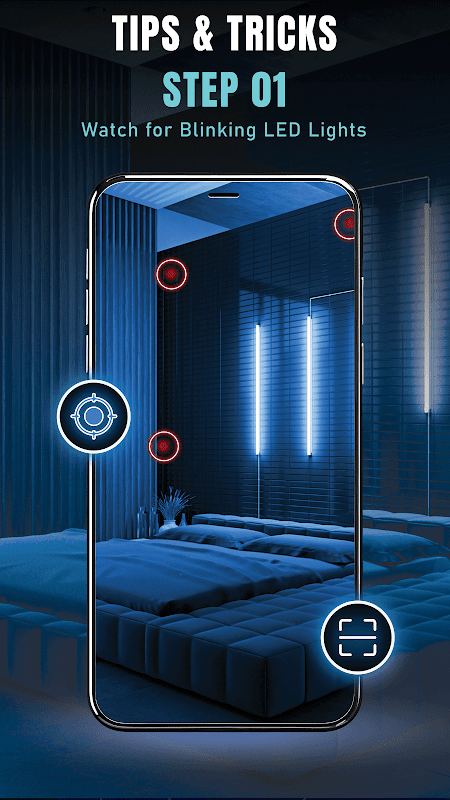 छिपे हुए कैमरे और माइक्रोफ़ोन का पता लगाएं अपने आस-पास संभावित छिपे हुए कैमरे और माइक्रोफ़ोन का पता लगाने के लिए उपयोग करें। स्पाई कैमरे आजकल बहुत आम हैं क्योंकि तकनीक में उन्नति के कारण वे बहुत छोटे आकार में आते हैं। छोटे आकार के कारण इन्हें आसानी से पहचाना नहीं जा सकता। इसका उपयोग करके छिपे हुए कैमरे और माइक्रोफ़ोन ऐप का पता लगाकर आप आस-पास के क्षेत्र का पता लगा सकते हैं जहाँ चुंबकीय क्षेत्र का मान अधिक है। फिर आप हिडन कैमरा डिटेक्शन उद्देश्य के लिए मैन्युअल रूप से उस क्षेत्र की जांच कर सकते हैं।