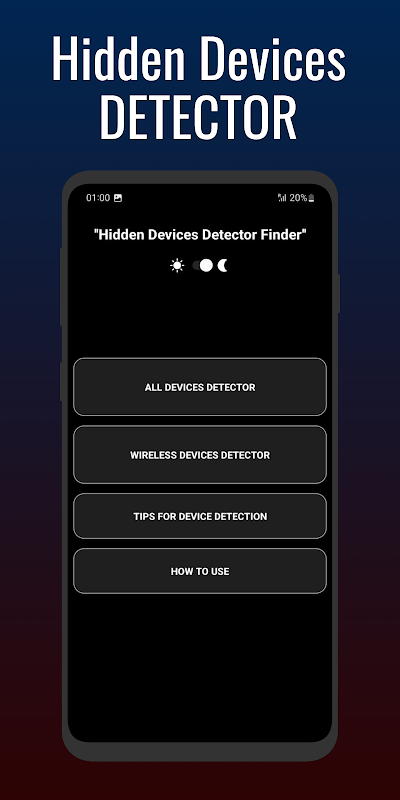 छिपे हुए डिवाइस डिटेक्टर फाइंडर एक मददगार उपकरण होगा जो आपको छिपे हुए डिवाइस का पता लगाने की अनुमति देता है। यह एक बग डिटेक्टर स्कैनर है जो एक छिपे हुए कैमरा डिटेक्टर के रूप में भी काम करेगा। छिपे हुए कैमरा डिटेक्टर और छिपे हुए डिवाइस डिटेक्टर जिन्हें हम बाजार से भौतिक रूप से खरीद सकते हैं, वास्तव में महंगे हैं जिससे हर व्यक्ति के लिए स्टोर से जासूसी कैमरा डिटेक्टर प्राप्त करना मुश्किल हो जाता है। अब हमारा कैमरा डिटेक्टर छिपे हुए डिवाइस डिटेक्टर जासूसी डिवाइस का पता लगाने की इस समस्या को हल करेगा। ऐप आपको छिपे हुए बग का पता लगाने की अनुमति देता है।