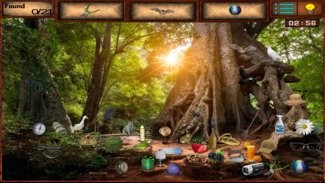- Search for hidden objects, every time you play the same level, you get new missing items.