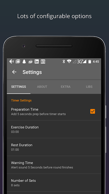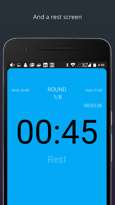 Set your screen to stay awake when you want to have your device easierly visible or let the alarm tick away in the back ground with the screen off. Remaining Interval time is displayed in notifications on your lock screen.