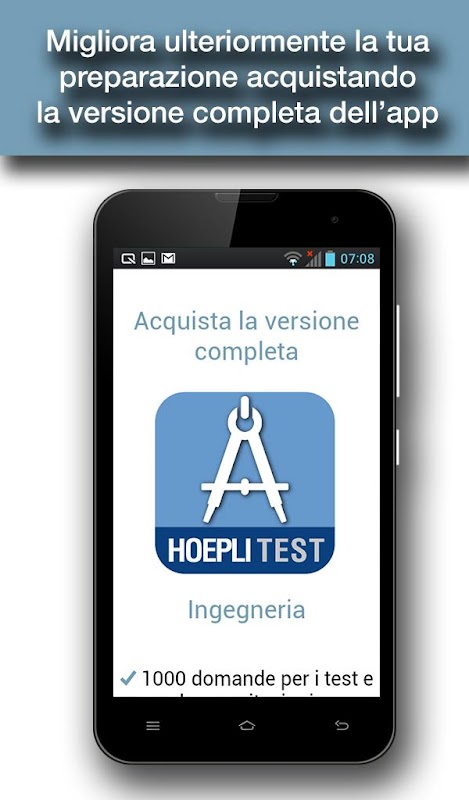 Acquista la full app Hoepli Test e scopri le possibilità di un database da 1000 domande e del set completo di funzionalità!
