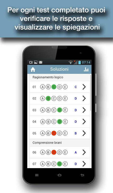 – verificare le risposte corrette e sbagliate in un pratico riepilogo;