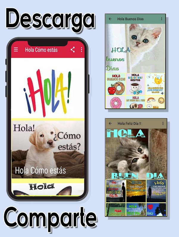 Descarga ya mismo esta aplicación ideal para desear un feliz dia y disfruta enviando imagenes de hola, frases de buenos dias amor y mensajes de feliz dia.
